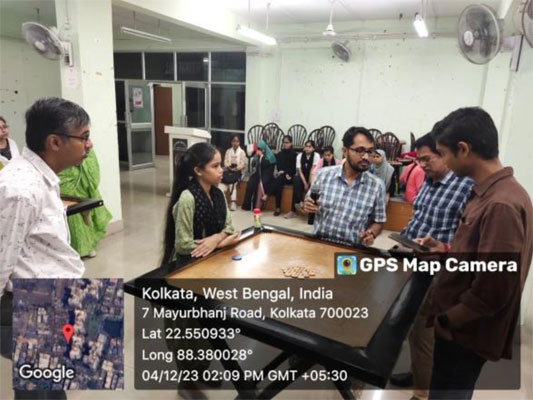 Our college not only supports erudite training, but also spiritually inspires students to engage in extracurricular activities. This reflects on the institute’s particular aphorism of allowing them to lead a well-rounded lifestyle balancing studies and cocurricular, all at their disposal in campus. Within college premises, students have been provided with adequate space to play badminton. Barring this outdoor sport, students can also opt to unwind their tangled minds from the complexities of their academics by immersing themselves in some indoor games like Chess, Scrabble, Carrom etc. Playing chess can improve cognitive skills like memory, planning, organizing and problem-solving. It also sharpens their minds and makes them alert about their surroundings. Scrabble may seem like a childish game at first, but do not be deceived by its simple rules! Playing Scrabble can strengthen a person’s vocabulary and sharpen their memory of stock of words.